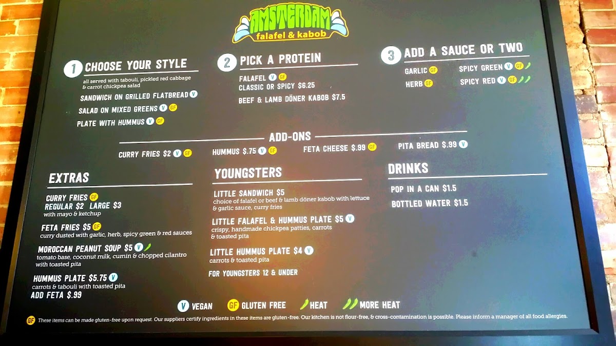 When you step into Amsterdam Falafel & Kabob, you're in for a treat that takes you straight to the heart of Middle Eastern flavors. Located at 620 N 50th St, Omaha, NE, the menu is an exciting blend of vibrant, savory dishes that are sure to satisfy any craving. Amsterdam Falafel & Kabob Menu offers a variety of mouth-watering options, from their famous falafel served with fresh veggies and a choice of sauces, to the perfectly spiced kabobs, grilled to perfection. Whether you're in the mood for something light and fresh or hearty and filling, there's something here to please every palate. Don't forget to try their signature sides and dips that perfectly complement your meal, making every bite a burst of flavor. From casual lunches to cozy dinners, this menu has you covered with satisfying dishes that will keep you coming back for more.